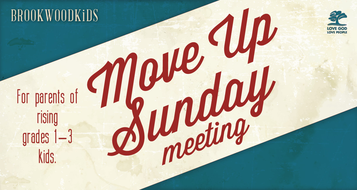 BrookwoodKiDs invites all elementary parents to Move Up Sunday. You'll hear the vision for the BrookwoodKiDs ministry and learn about the fun and exciting things we do weekly, upcoming events and how to be involved.